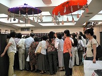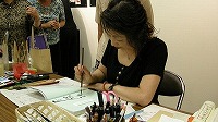 | 47遊び文字の実演を見る人たち | 48布に描ける墨を使って(開明ー帛書墨)実演で制作 | 49会場右半分 | ||